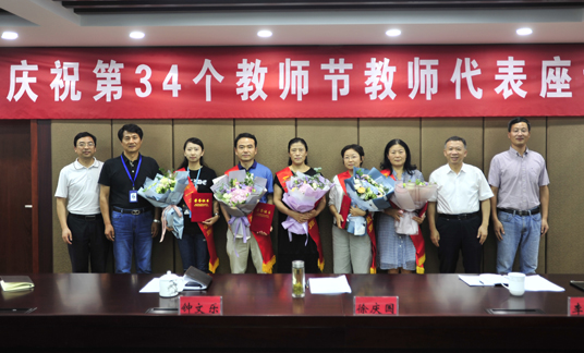 9月10日下午,我院在行政楼215会议室召开“弘扬高尚师德,潜心立德树人”教师代表座谈会,庆祝第34个教师节。院长徐庆国出席座谈会并讲话,副院长钟文乐主持座谈会。优秀教师代表、“一奖三赛”活动中取得优异成绩的团队和教师代表、教龄30年教师代表、青年教师代表、全体新进教师和相关部门负责人参加了座谈会。
