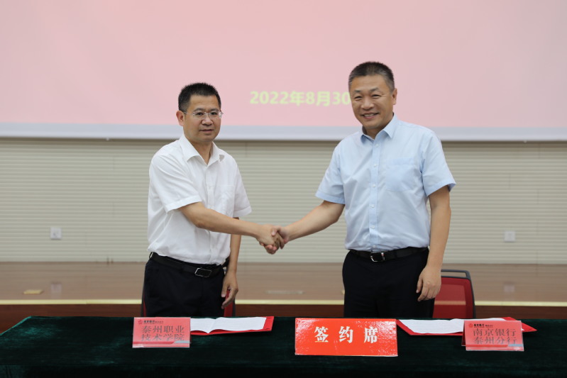 南京银行股份有限公司泰州分行相关部门、高新区支行负责人,学院相关单位负责人参加签约仪式。