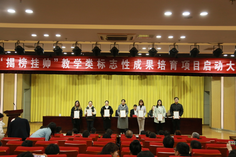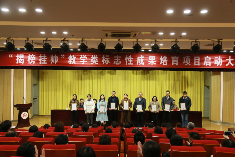3月21日下午4点,学校在大学生活动中心105报告厅召开首批“揭榜挂帅”教学类标志性成果培育项目启动大会,校党委书记陈士宏,党委副书记、校长吕林及所有在校党政领导出席会议,各培育项目负责人、各院(部)和相关部门负责人、教师代表参加会议,会议由校党委委员、副校长陈芷主持。