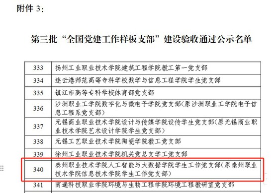 近日,教育部公示了第三批全国党建工作样板支部建设单位验收通过名单,人工智能与大数据学院学生工作党支部顺利通过验收。
