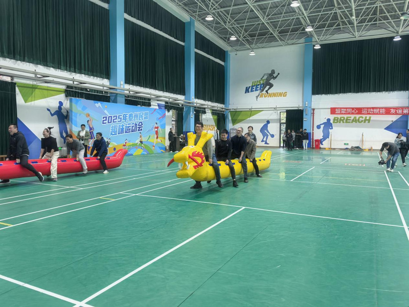 在“毛毛虫竞速”项目中,队员们步调一致、协同发力,充气毛毛虫在赛道上快速前行,引来阵阵喝彩;“车轮滚滚”环节里,各队成员手脚配合默契,“车轮”滚动间展现着团结的力量;“两人三足”比赛中,搭档们相互扶持、稳步向前,用默契诠释着协作的意义;拔河赛场更是气氛热烈,队员们紧握长绳、齐心协力,呐喊声与加油声此起彼伏,将现场氛围推向高潮。