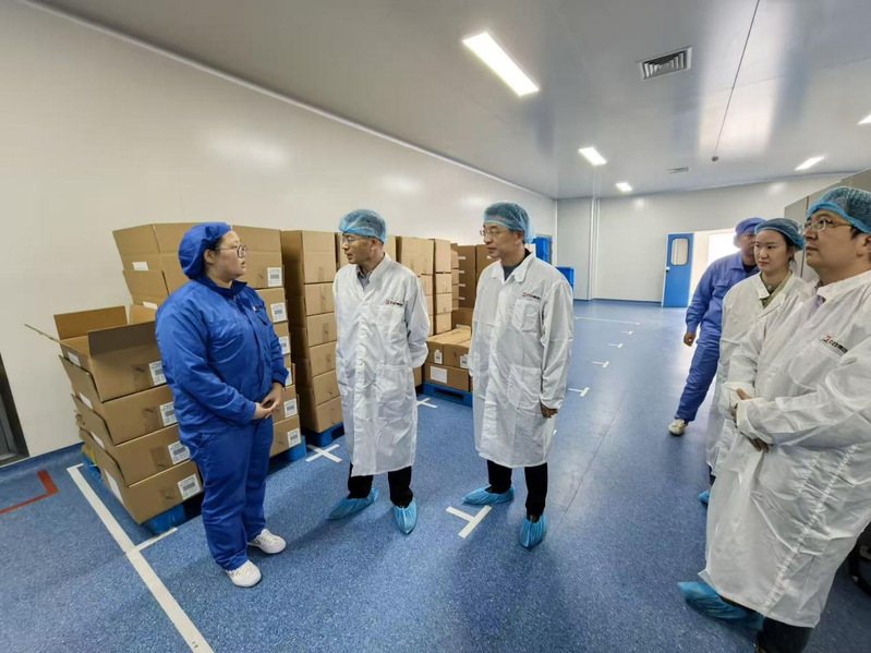在公司总经理杨英梅带领下,吕林一行先后走进压片车间、包装车间,实地察看自动化生产运行情况,近距离感受企业严谨规范的生产管理体系。随后,吕林与顶岗实习学生亲切交谈,关切询问工作内容、岗位适应度及生活保障情况,倾听实习收获与感想。