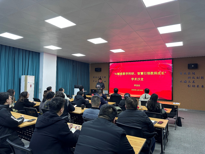 12月19日下午,我校成功举办“AI赋能教学科研,智慧引领教师成长”学术沙龙。活动在智数院107会议室举行,校党委副书记、校长吕林和校党委委员、副校长李曙生出席活动,各院(部)分管科研副院长、教科研办主任及部分骨干教师代表参会,讲座由科技处副处长(主持工作)刘竺云主持。