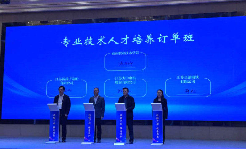在签约仪式上,我校正式与新扬子造船、大中、长强等行业龙头企业达成合作。根据协议,校企双方将围绕机械类及船舶工程专业共建“订单班”,全面落实“招生即招工、入校即入企”的闭环培养模式。